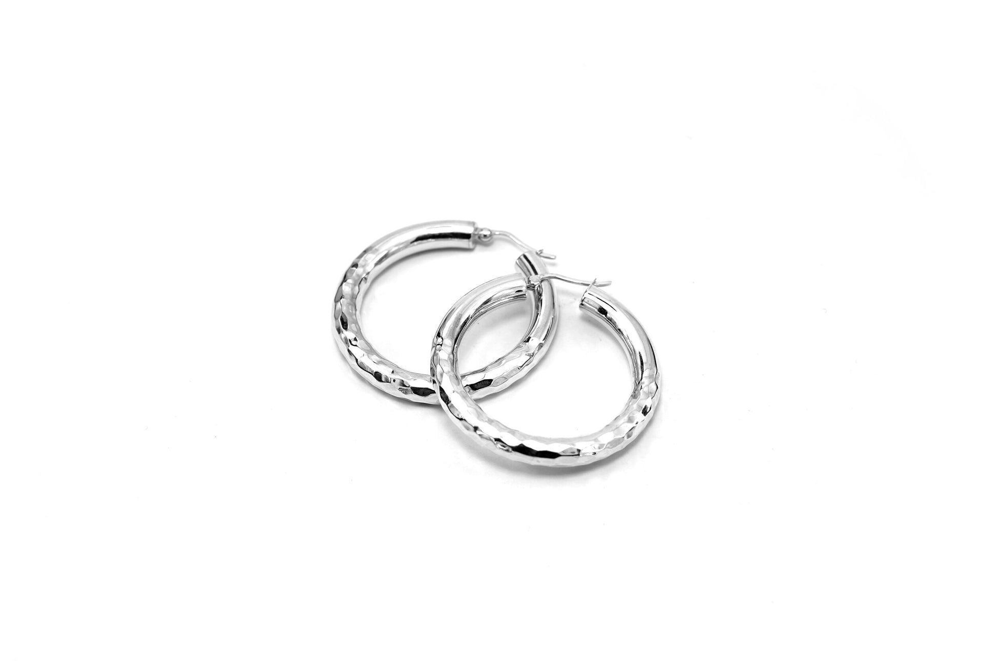 Little Halsey hoops are one of our most prized this collection with the sea as our inspiration. Half is finished with a smooth polishes, representing the shore , while the other half is given a slight hammered texture representing the ocean waves.